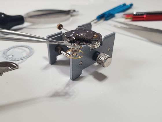 分解:時計を完全に分解し、すべての部品を個別に検査。